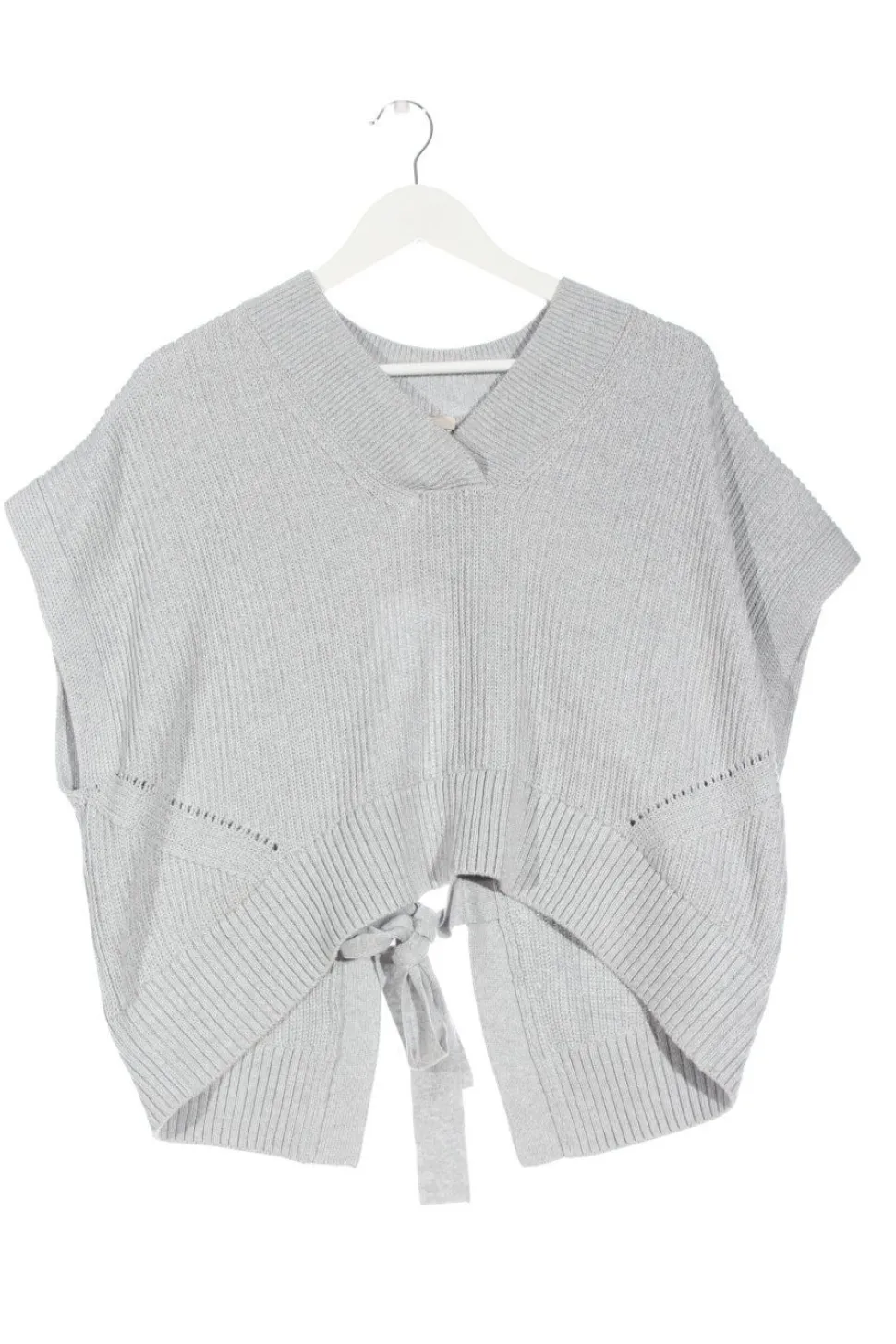 - V-Ausschnitt, Armbündchen, Knotenverschluss, meliert, Zopfmuster, Casual-Look, Street-Fashion-Look