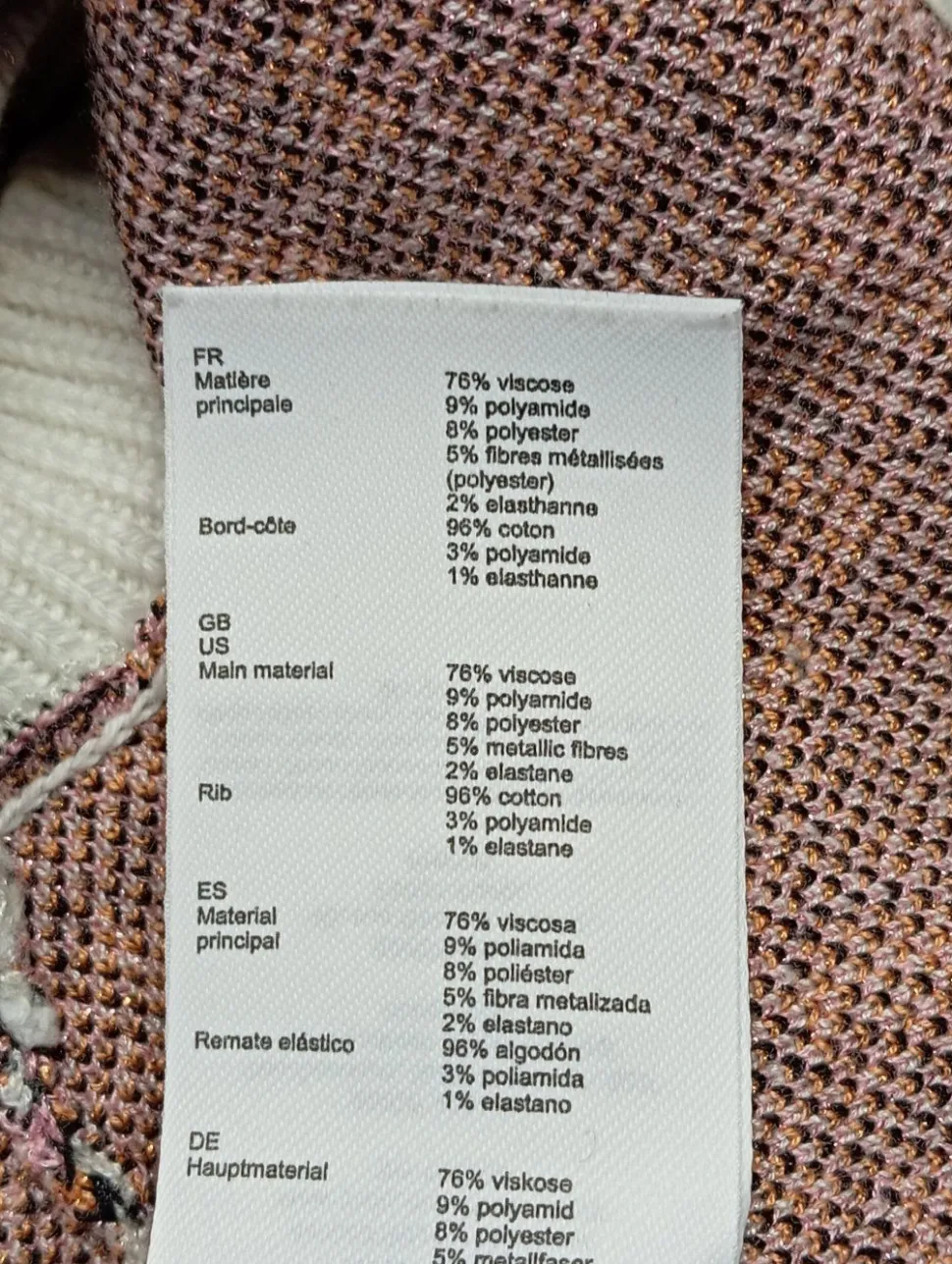 - Außenmaterial: 76% Viskose, 9% Polyamid, 8% Polyester, 5% keine Textilangabe