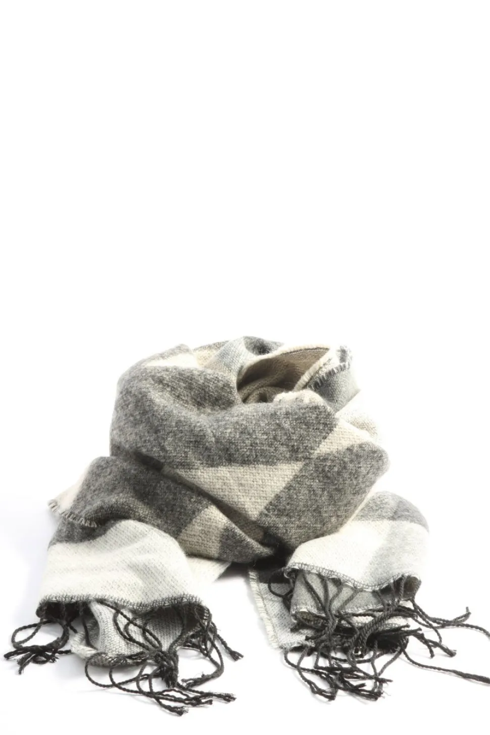 - Pieces Fransenschal, hellgrau-weiß