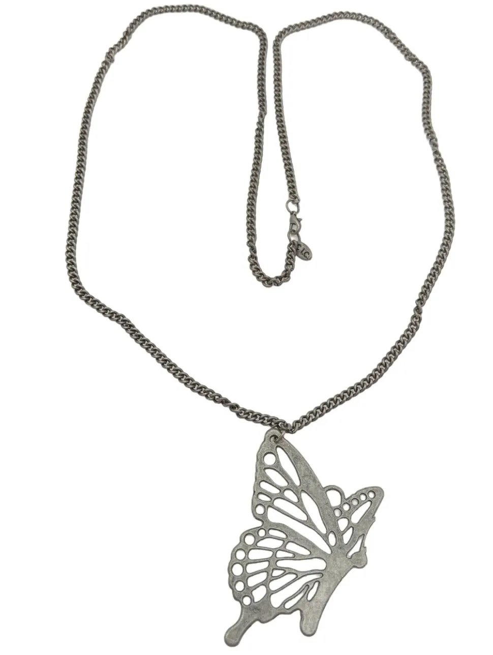 - Details: silberfarbiges Material, feingliedrige Kette, filigraner Anhänger, Labelgravur, Metallelemente