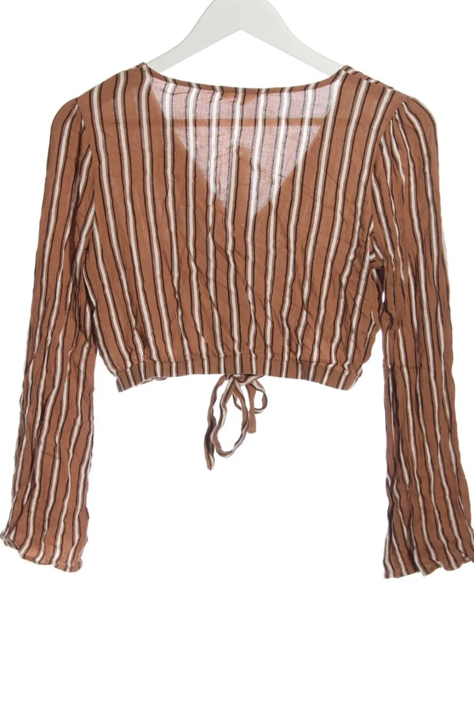 - V-Ausschnitt, Bund am Ärmelsaum, Knopfverschluss, Knotenverschluss, Streifenmuster, Casual-Look, Street-Fashion-Look