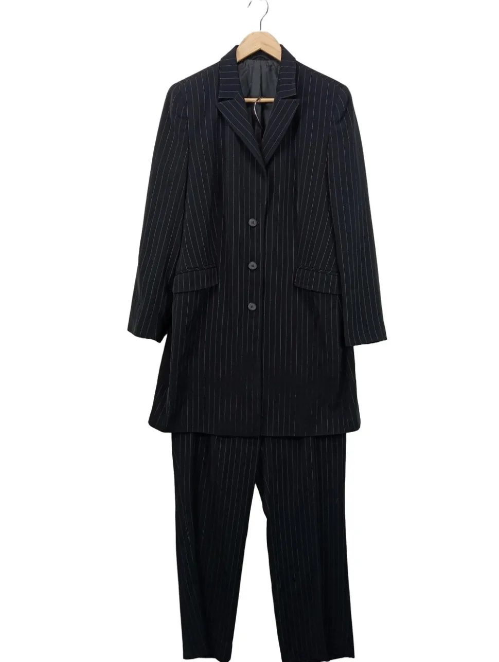 - V-Ausschnitt, Umlegekragen, Bund am Ärmelsaum, Knopfverschluss, Pattentaschen, Streifenmuster, Business-Look, klassischer Stil, Vintage-Look