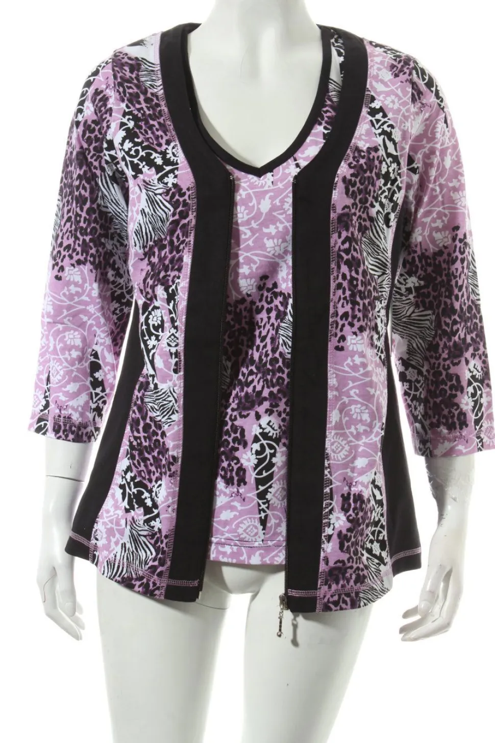 - V-Ausschnitt, Reißverschluss, abstraktes Muster, elastisch, extravaganter Stil