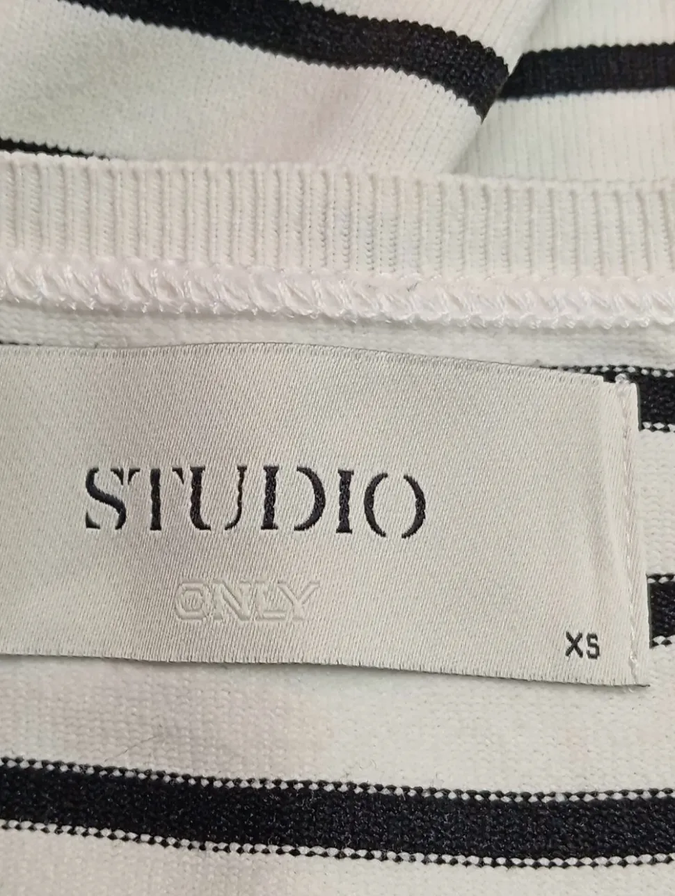 - Studio Kurzarm-Bluse, weiß-schwarz Streifenmuster