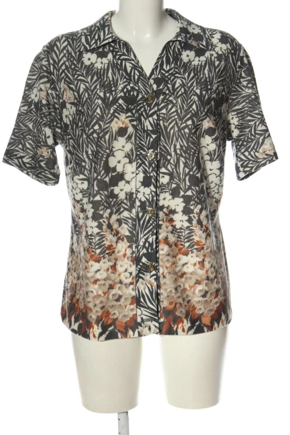 - V-Ausschnitt, Umlegekragen, Bund am Ärmelsaum, Knopfverschluss, Blumenmuster, grafisches Muster, Casual-Look