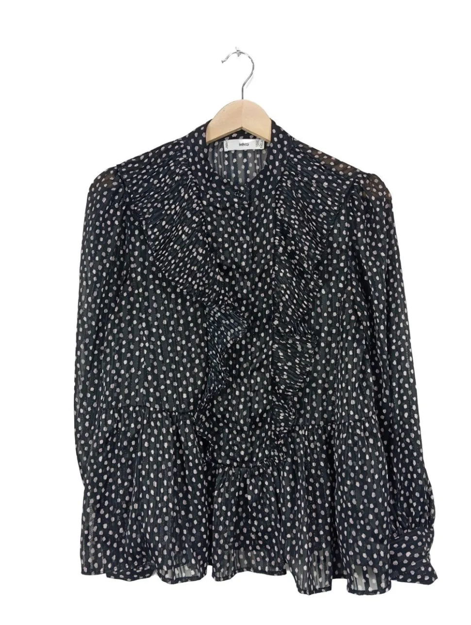 - MNG Langarm-Bluse, hellgrau Allover-Druck