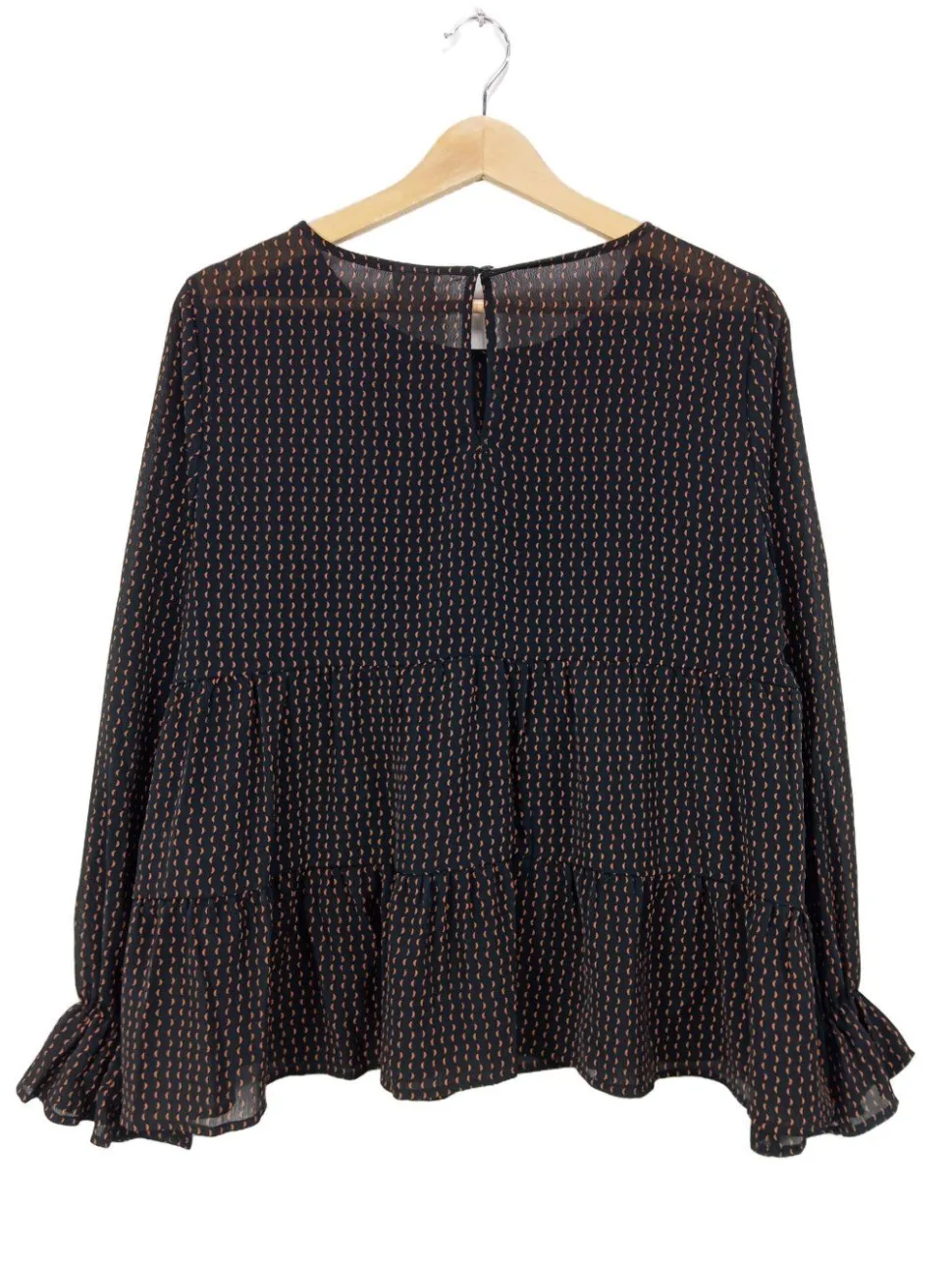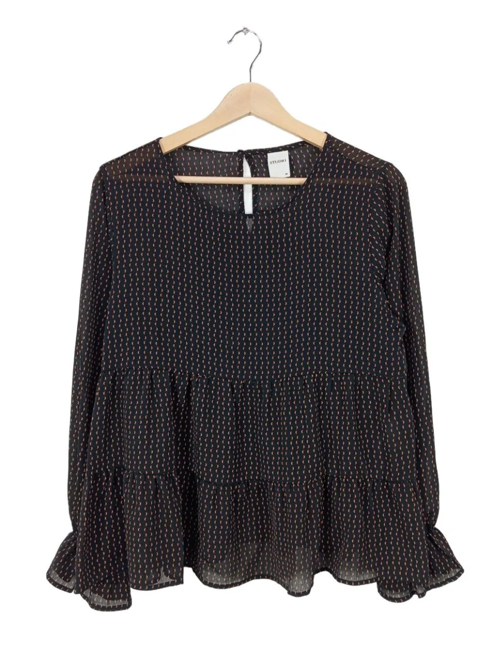 - Studio Langarm-Bluse, hellorange-schwarz Allover-Druck