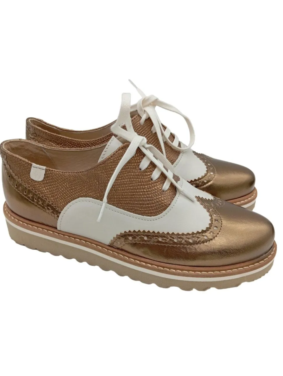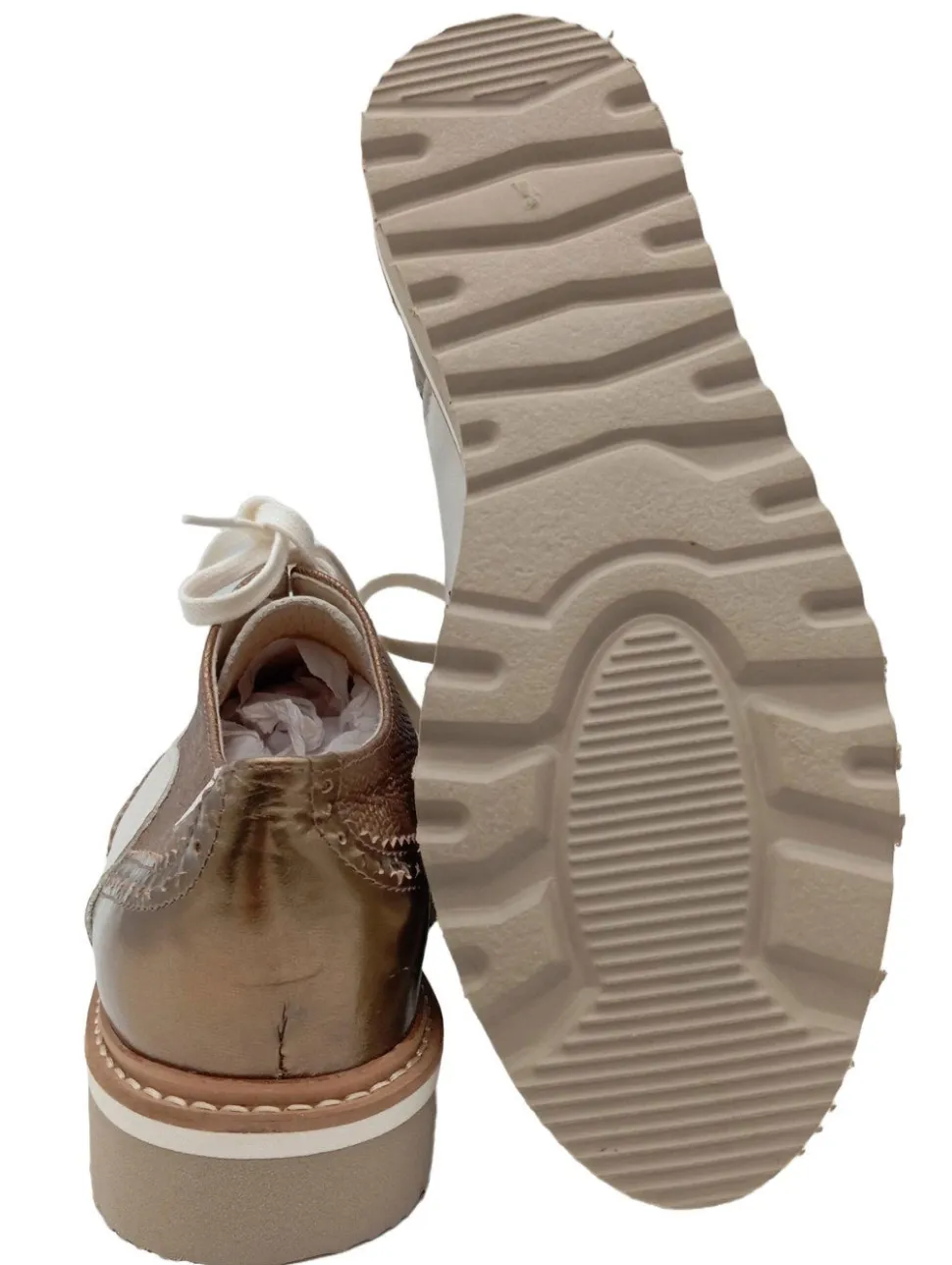 - strukturierte Laufsohle, runde Schuhspitze, Schnürverschluss, Glanz-Optik, Party-Look, Vintage-Look