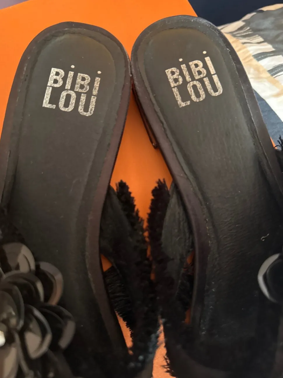 - Modell: Pantoletten mit Blumenapplikation