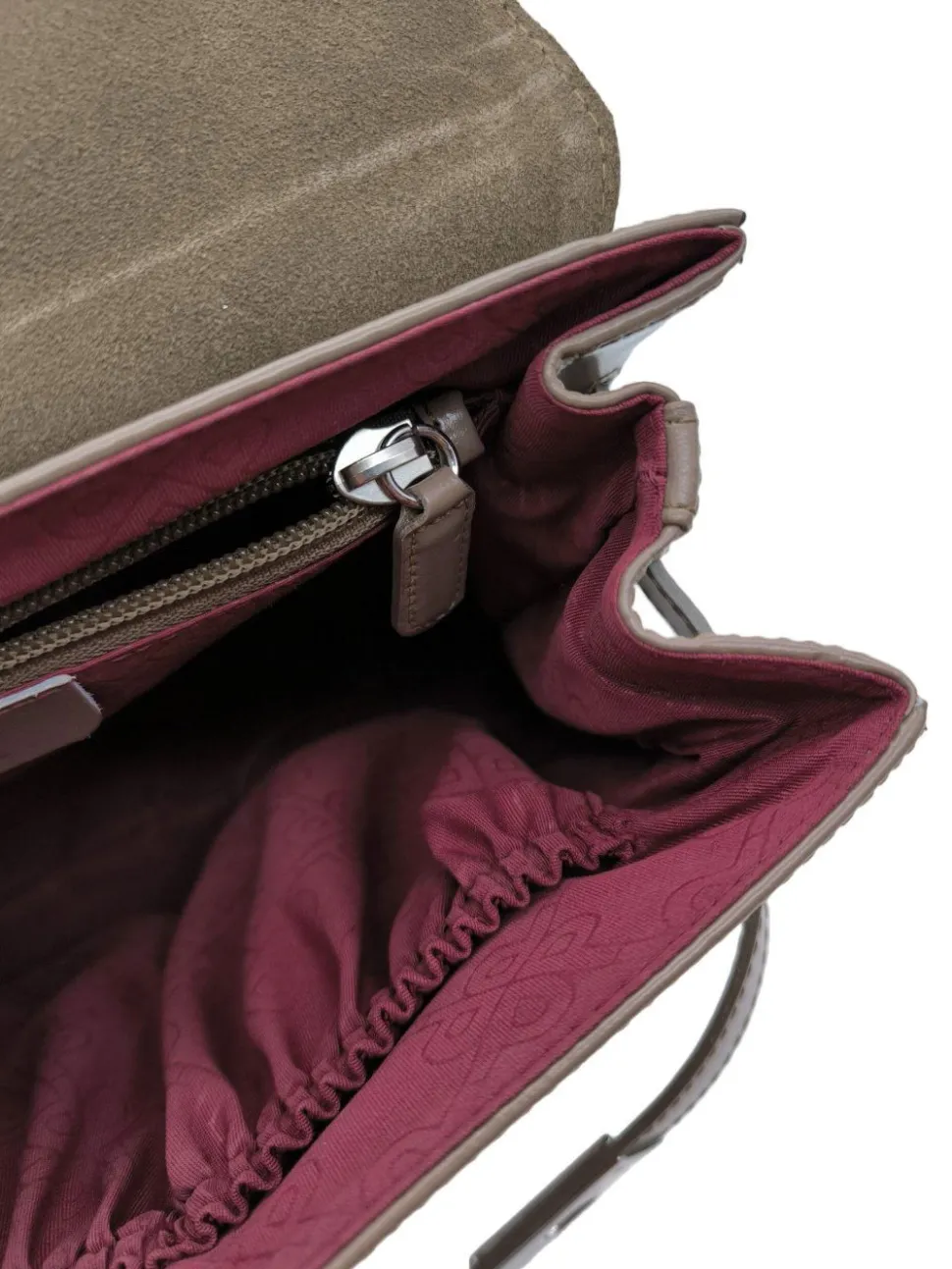 - Details: silberfarbene Hardware, Standfüßchen, Henkel, Logo-Applikation aus Metall, Metallelemente, Reißverschlusstasche außen