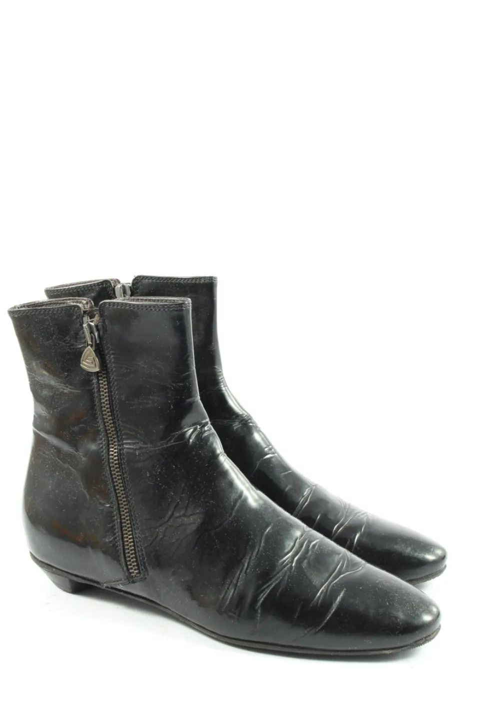 - genoppte Laufsohle, runde Schuhspitze, Reißverschluss, Casual-Look, Glanz-Optik, Vintage-Look