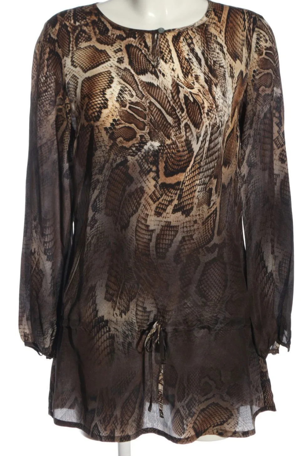 - Rundhalsausschnitt, Knopfverschluss am Ärmelsaum, Knotenverschluss, Animalmuster, Casual-Look, Elegant, klassischer Stil, Street-Fashion-Look