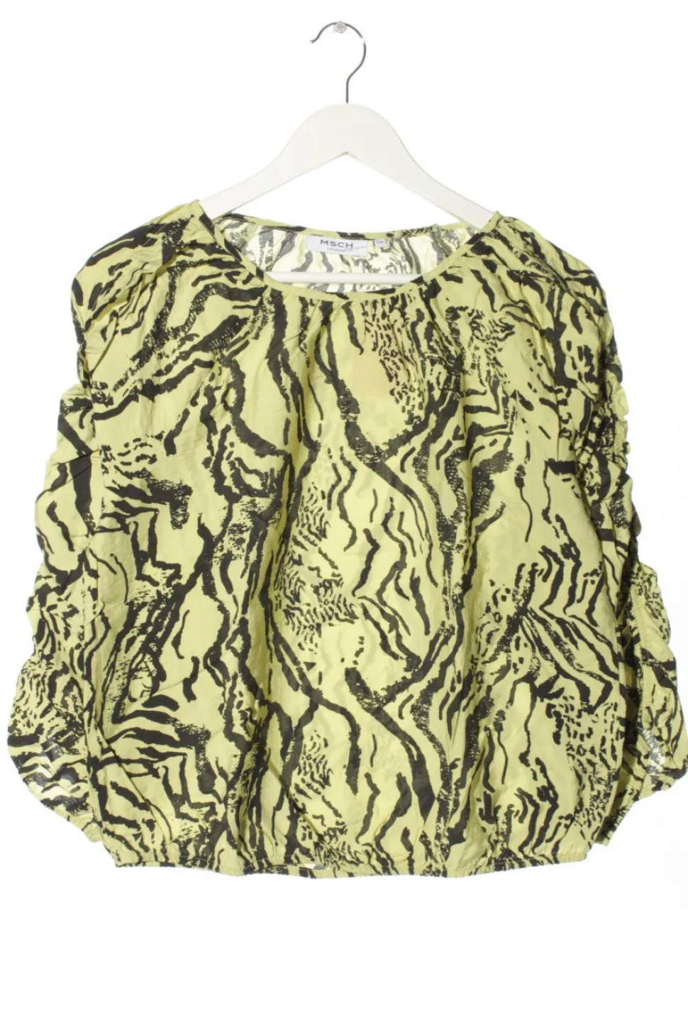 - MSCH Copenhagen Schlupf-Bluse, schwarz-limettengelb Allover-Druck