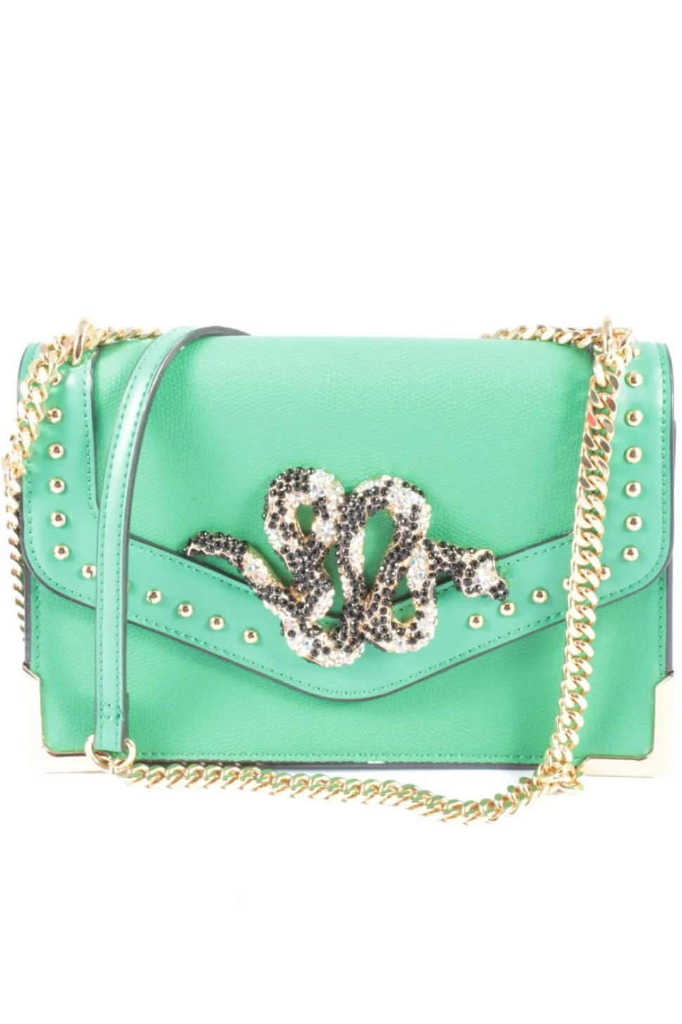 - Details: Tragekette, Lederelemente, Logo-Applikation, Metallelemente, Schmucksteinverzierung