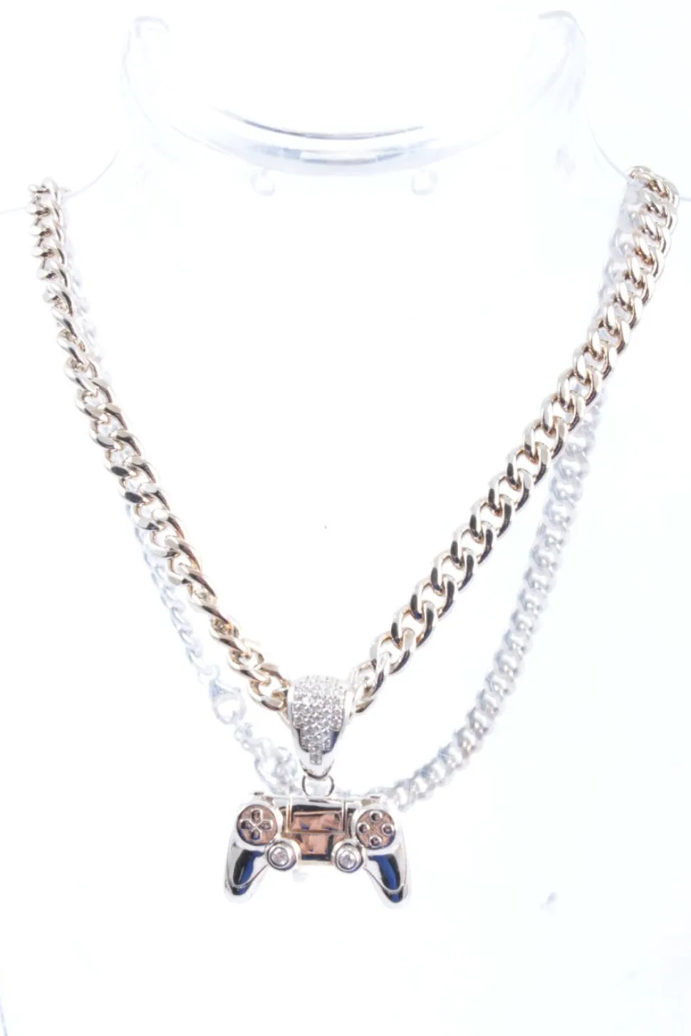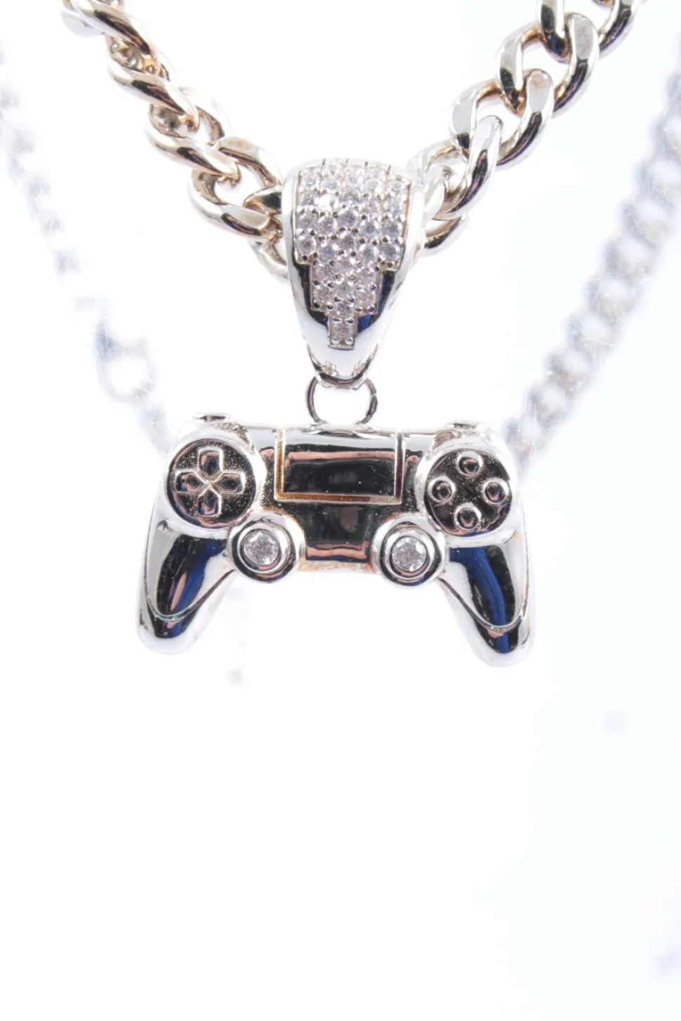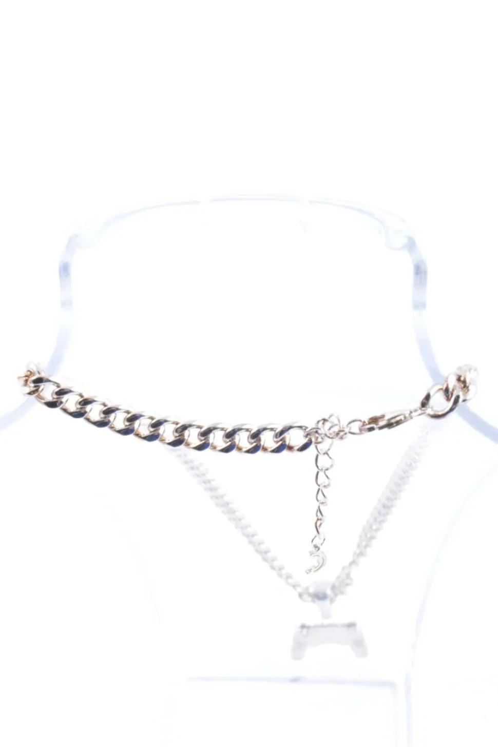 - Details: silberfarbiges Material, grobgliedrige Kette, kleine Anhänger, längenverstellbare Kette, Glitzersteinverzierung, Labelgravur