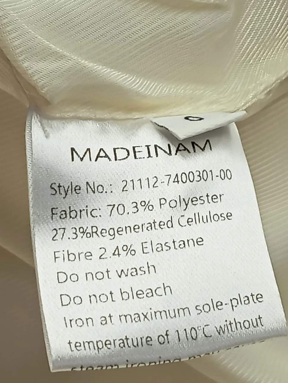 - Außenmaterial: 70% Polyester, 27% keine Textilangabe, 3% Elasthan