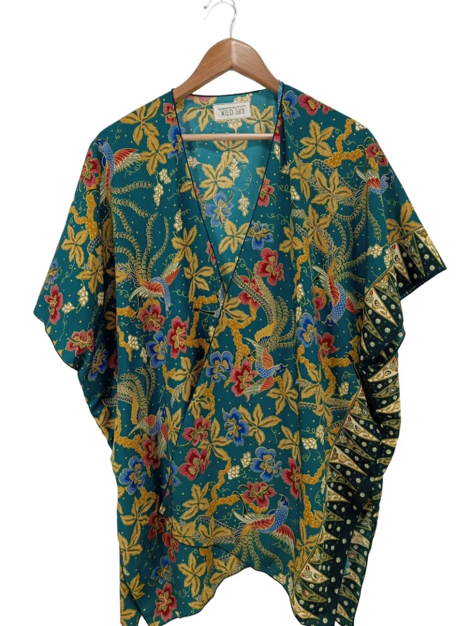- V-Ausschnitt, Ärmelsaumaufschlag, ohne Verschluss (wird offen getragen), abstraktes Muster, Allover-Druck, Casual-Look, Street-Fashion-Look