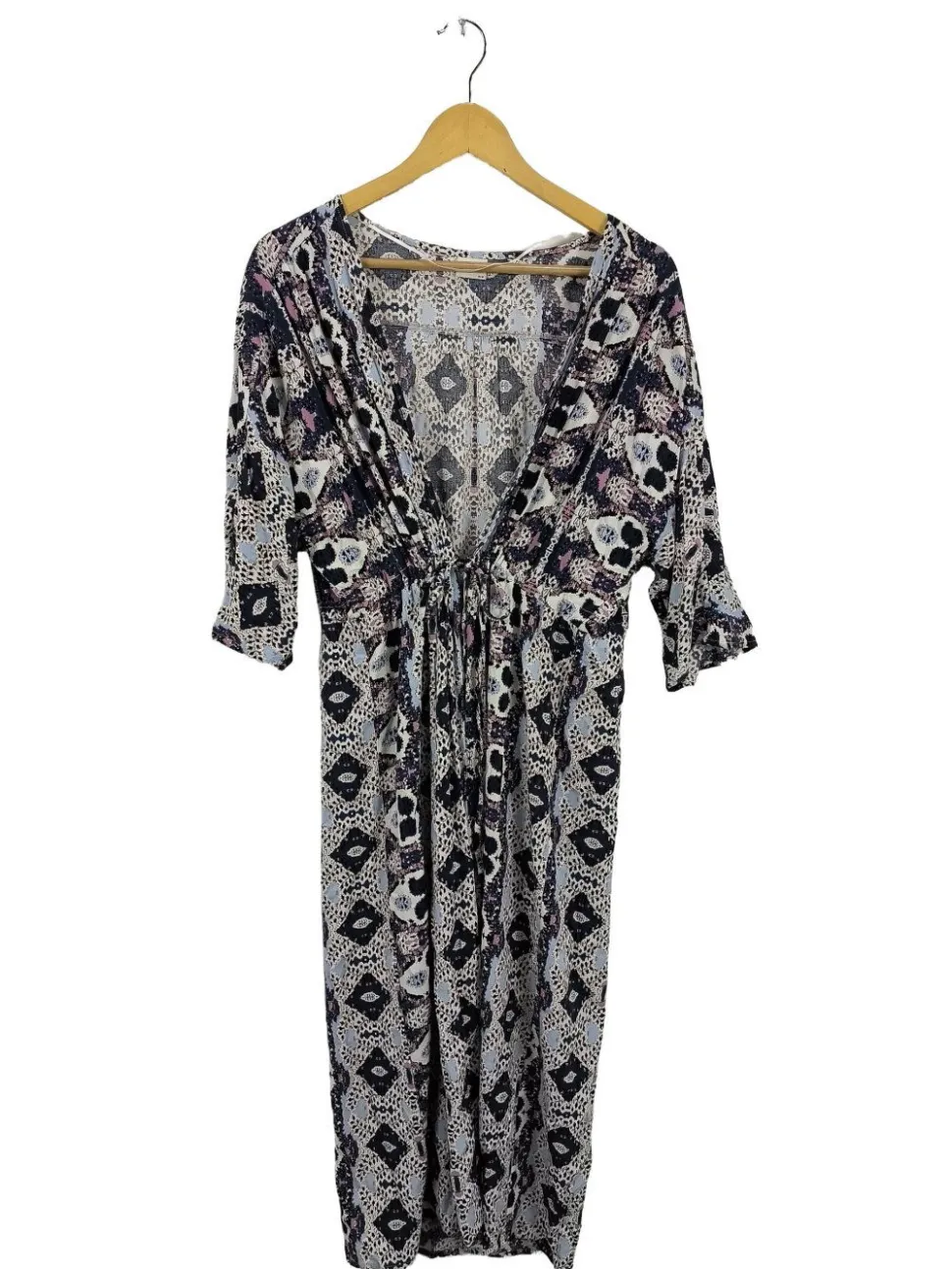 - tiefer V-Ausschnitt, Bund am Ärmelsaum, Knotenverschluss, Allover-Druck, grafisches Muster, Casual-Look, Street-Fashion-Look