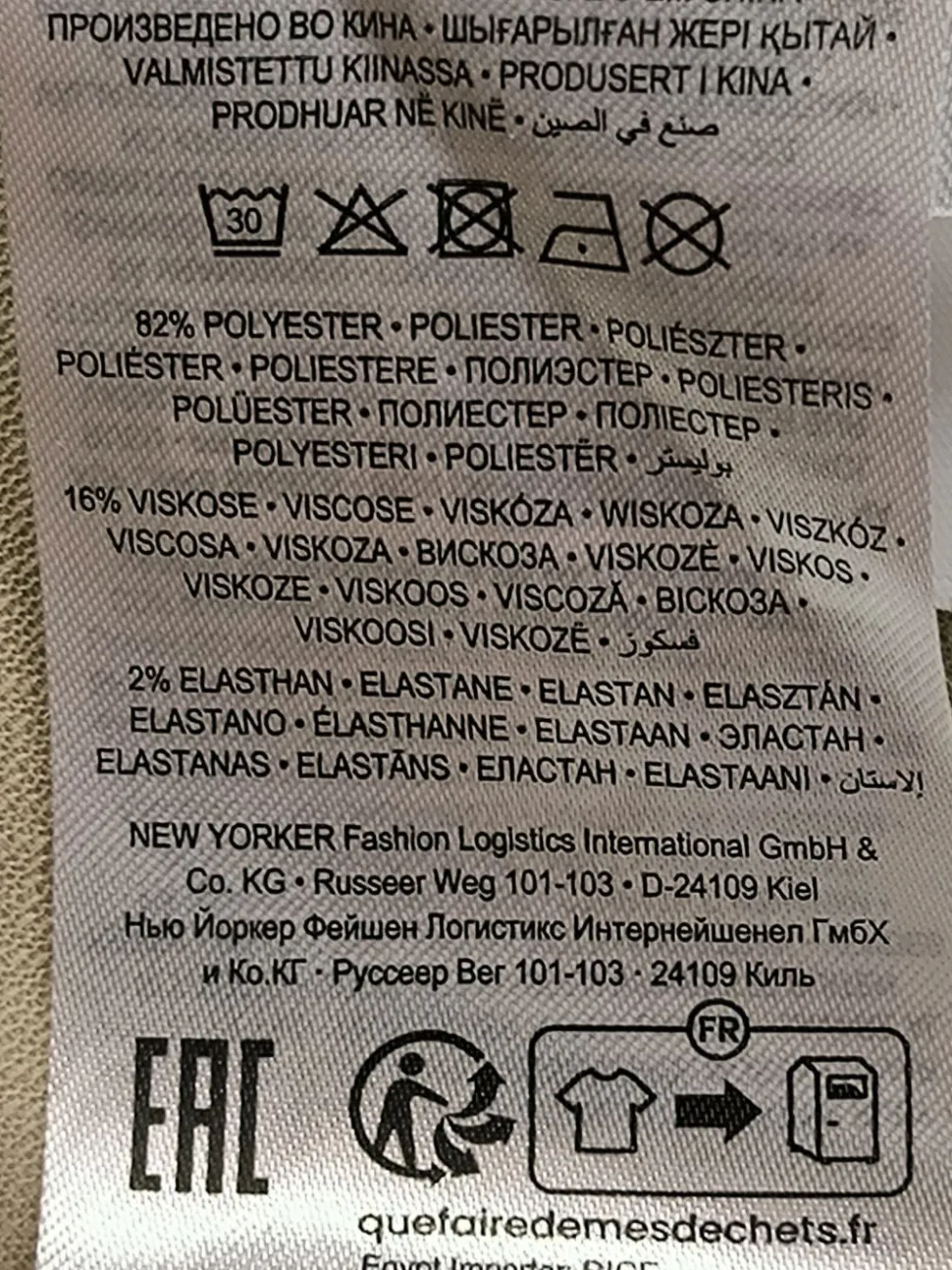 - Außenmaterial: 82% Polyester, 16% Viskose, 2% Elasthan
