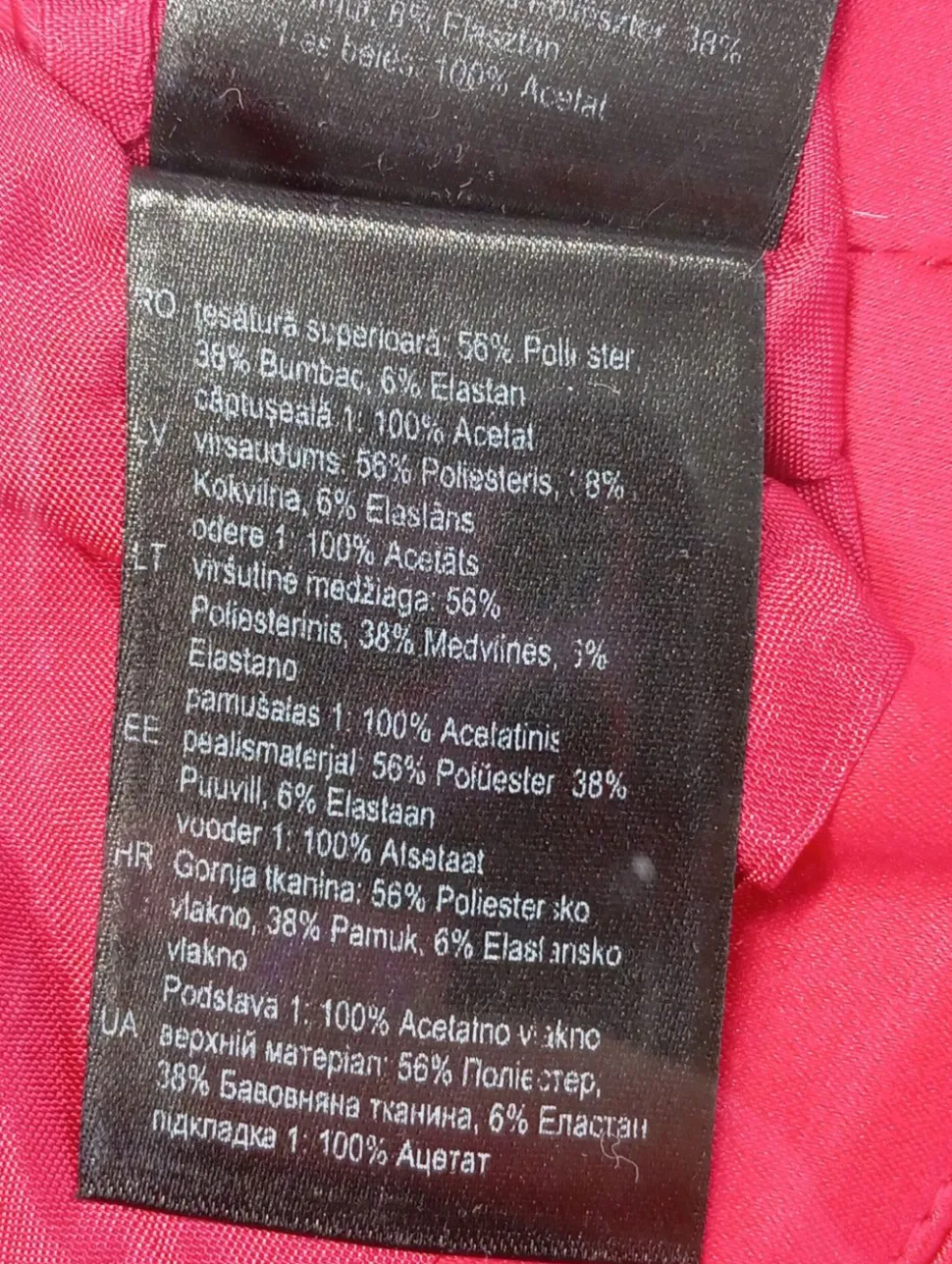- Außenmaterial: 56% Polyester, 38% Baumwolle, 6% Elasthan