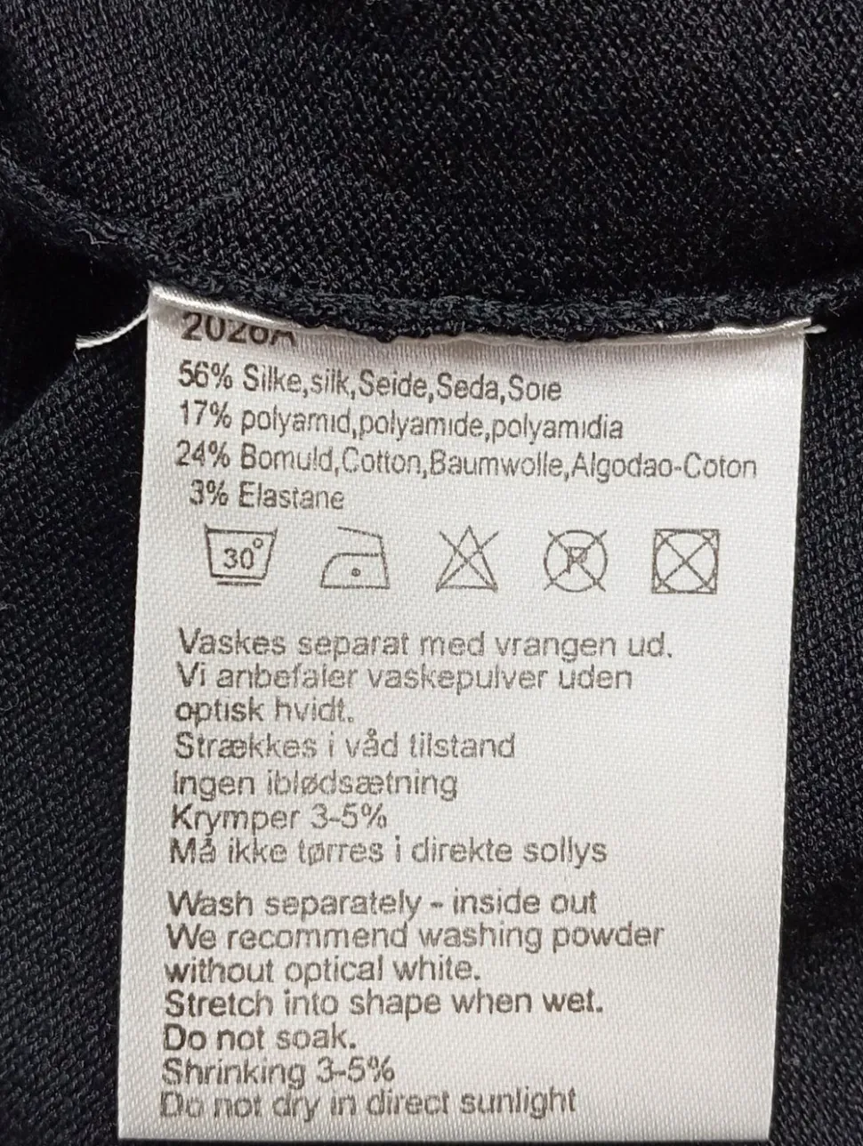 - Außenmaterial: 56% Seide, 17% Polyamid, 24% Baumwolle, 3% Elasthan