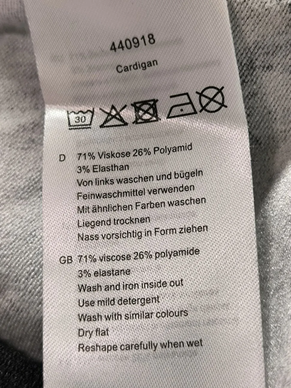 - Außenmaterial: 71% Viskose, 26% Polyamid, 3% Elasthan