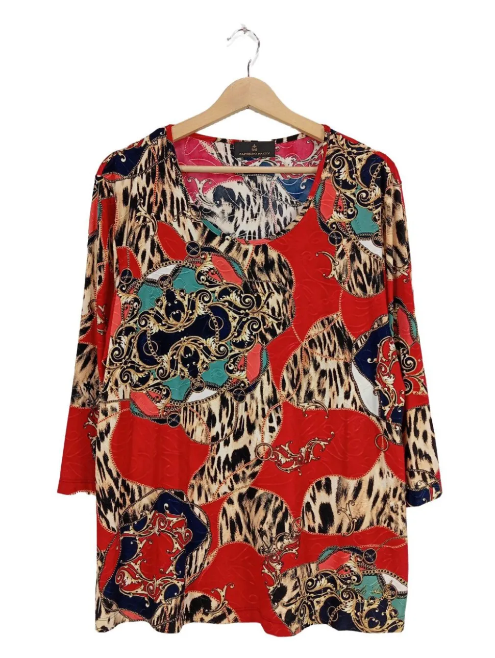 - U-Ausschnitt, Bund am Ärmelsaum, Knopfverschluss, Mustermix, Casual-Look, schlichter Stil