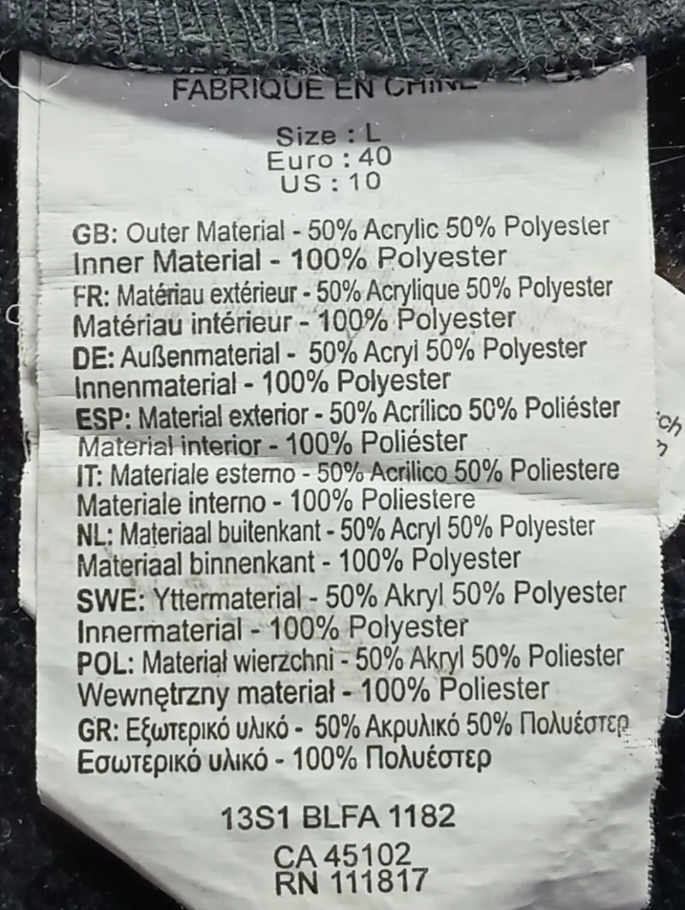 - Außenmaterial: 50% Polyacryl, 50% Polyester