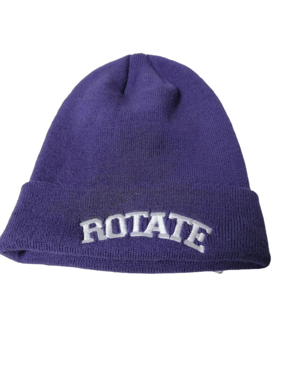 - ROTATE Birger Christensen Strickmütze, lila Schriftzug gedruckt