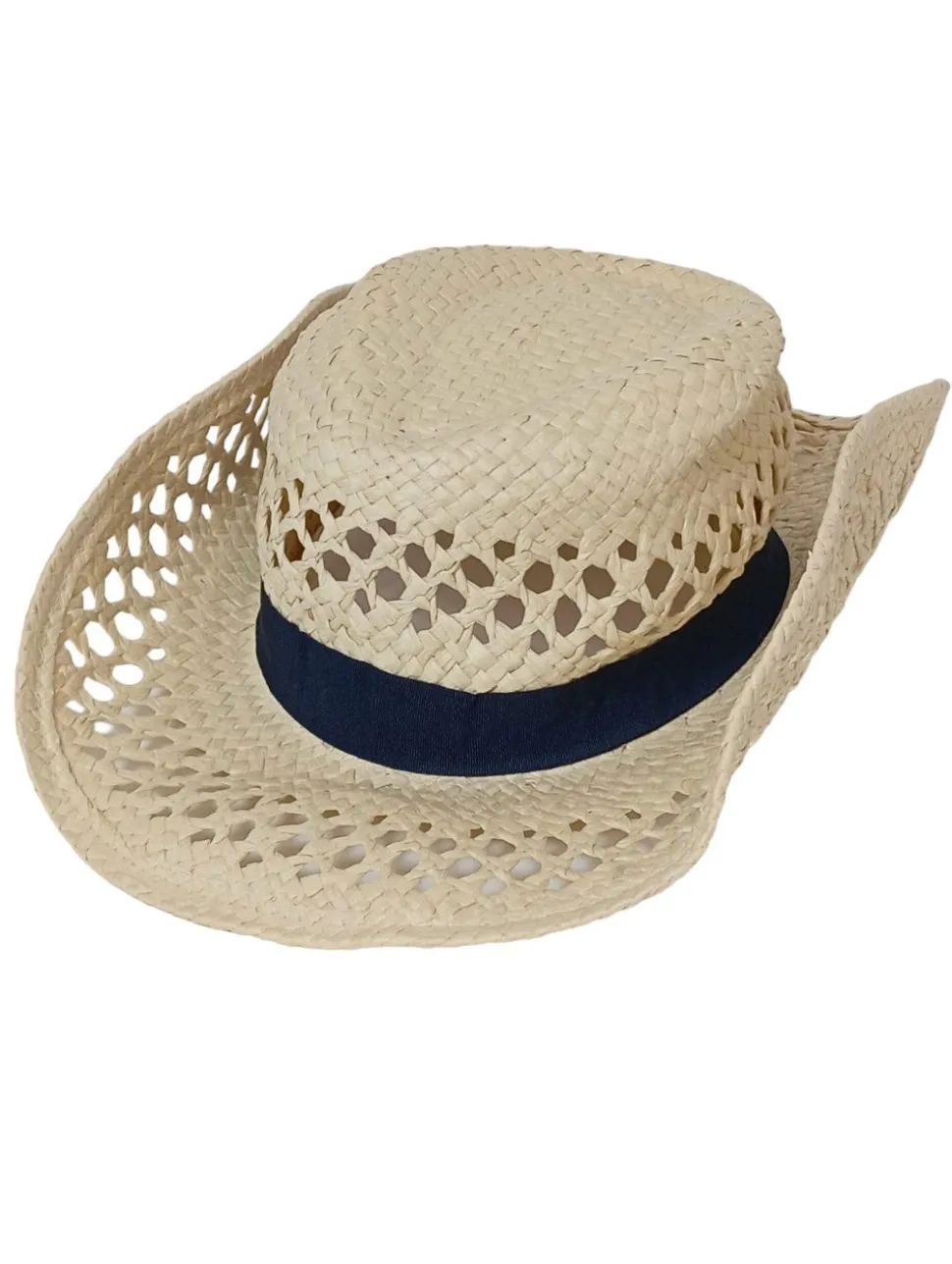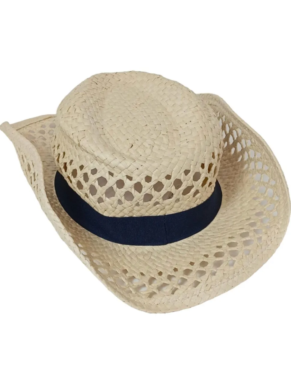 - Details: breite Krempe, eingekniffene Krone, Hutband