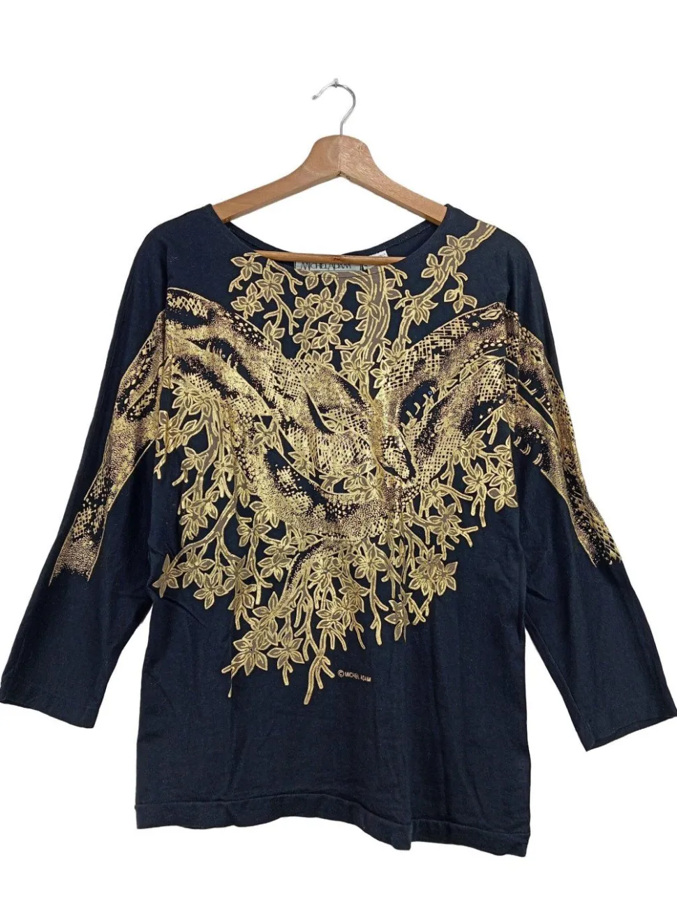 - Rundhalsausschnitt, Bund am Ärmelsaum, Motivdruck, Casual-Look, extravaganter Stil, Vintage-Look