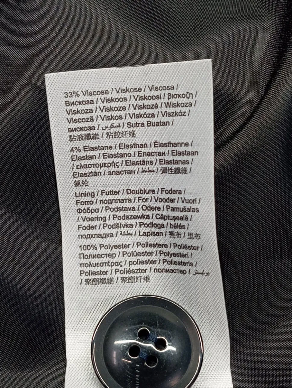 - Außenmaterial: 63% Polyester, 33% Viskose, 4% Elasthan