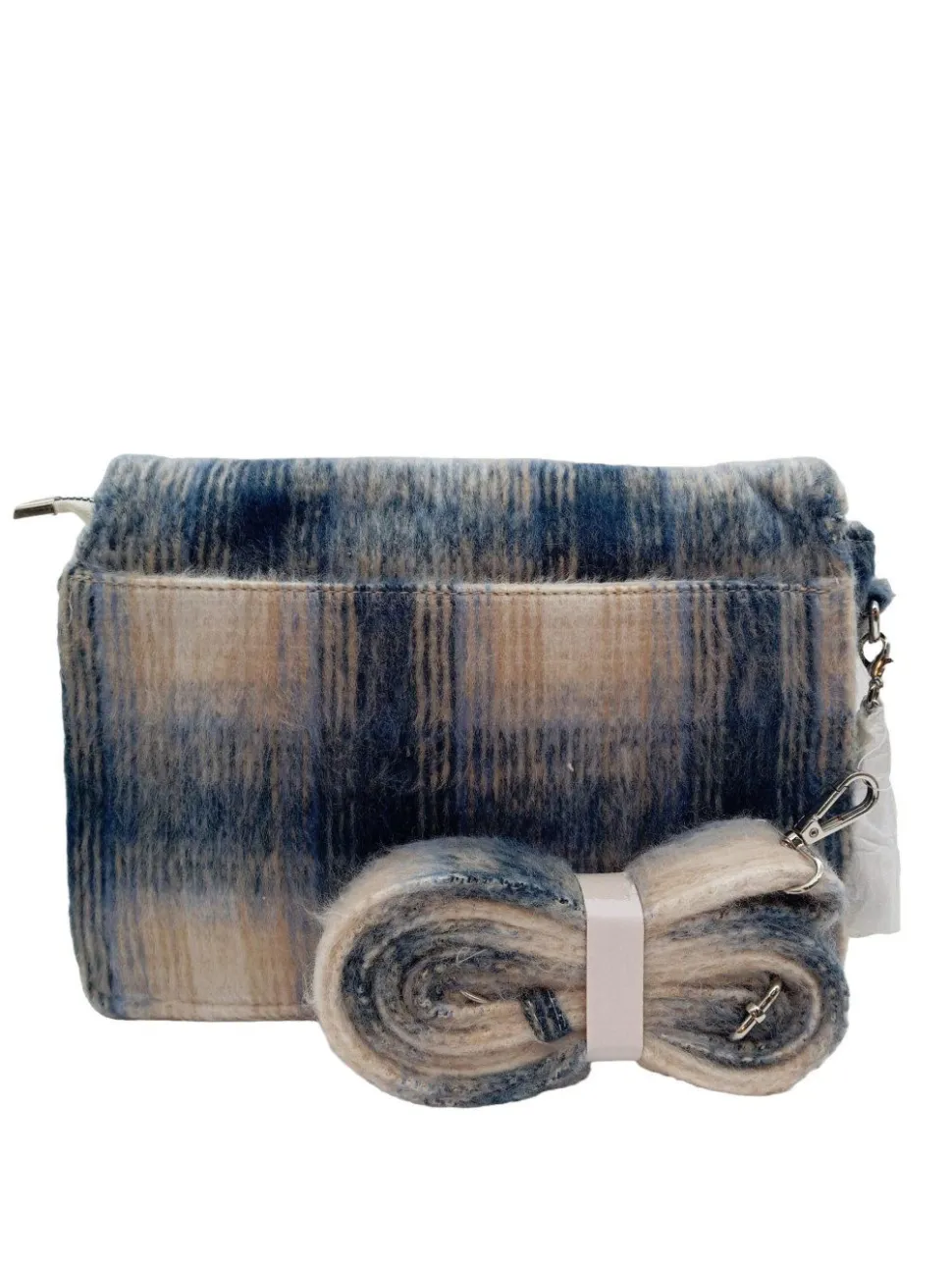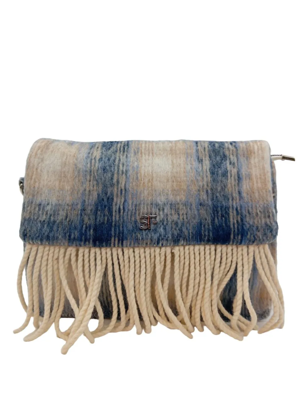 - Suri Frey Umhängetasche, wollweiß-blau Karomuster