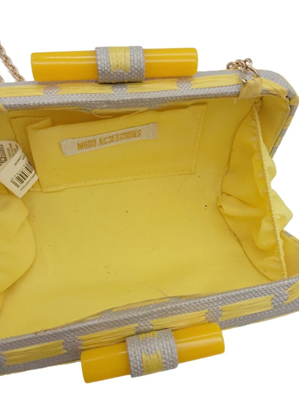 - Details: Tragekette, farbiges Futter, Logo-Applikation innen aus Leder, offenes Innenfach