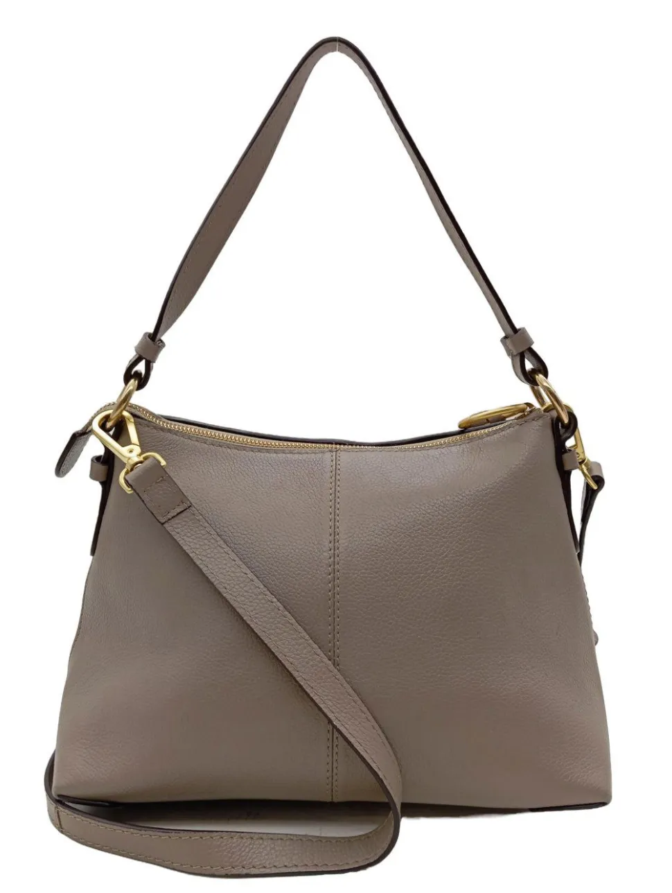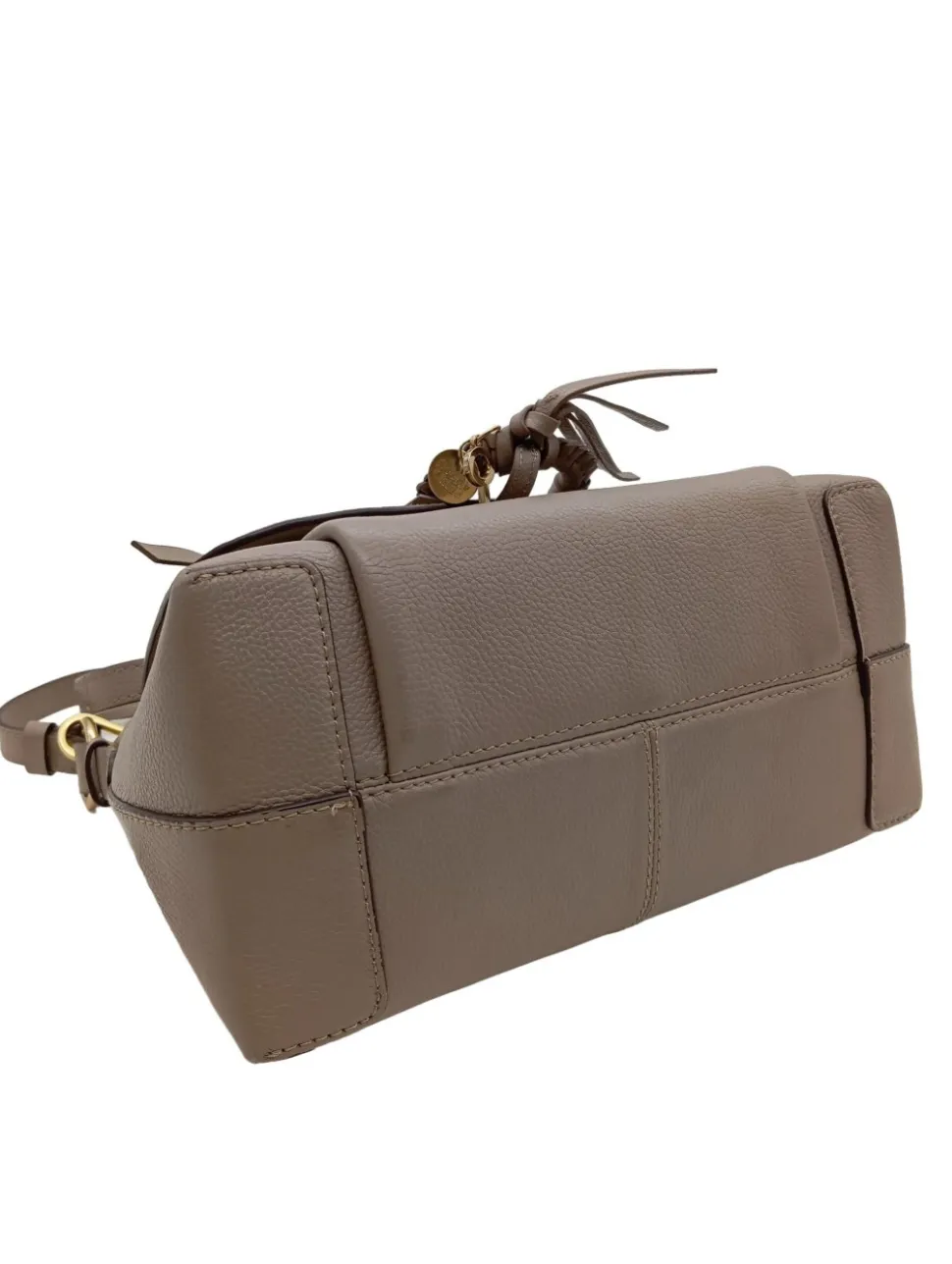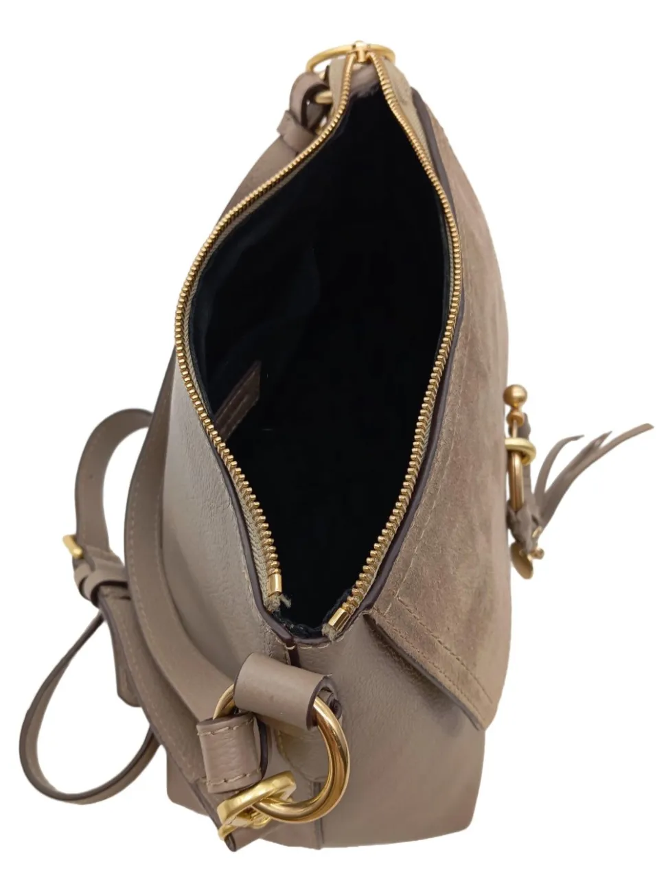 - Details: goldfarbene Hardware, Henkel, Schulterriemen, Ringelemente, Logo-Applikation innen, verschließbares Innenfach