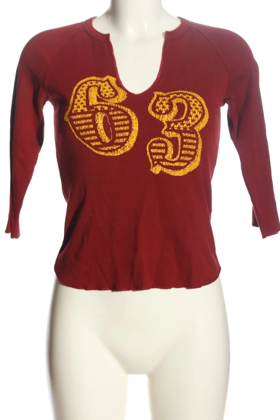 - H&M Divided V-Ausschnitt-Pullover, rot-blassgelb Schriftzug gestickt