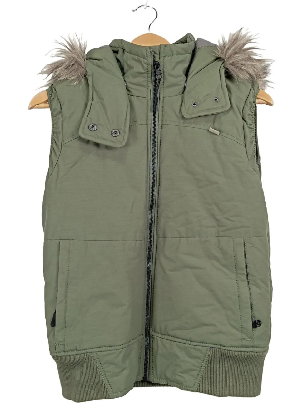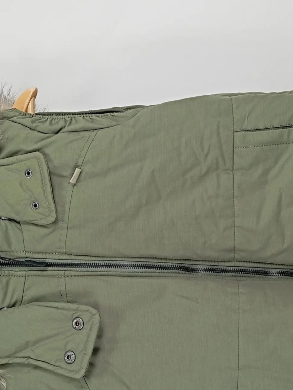 - Akzente: Fellbesatz, Gesteppt, Kapuze, Reißverschluss